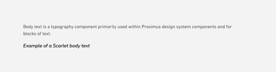 Each theme uses a common library with defined text sizes and line height. As Proximus being the default theme, all usage documentation is writing with Proximus examples and can be apply to other themes. Refer to Text sizes to have all the details.