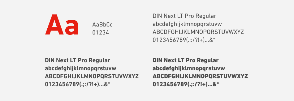 If you need add emphasis on one and some words, you can use the DIN Next LT Pro bold. Font weight is an important typographic variable that can add emphasis and differentiate content hierarchy.