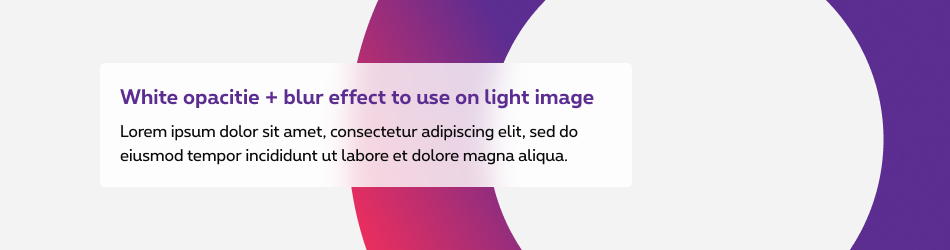 The effect is used to highlight one content in relation to another. Use maximum one box with opacity + blur per viewport/page.