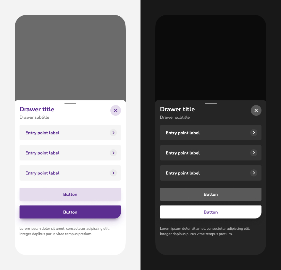 Drawers are anchored to the bottom of the screen, making it easy to drag up and down with the thumb.