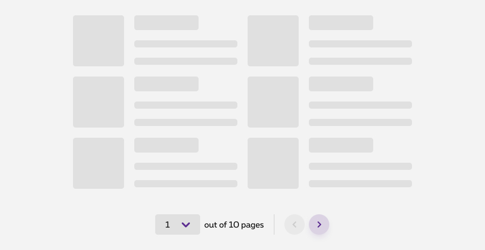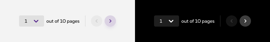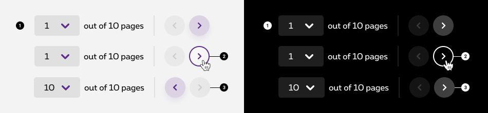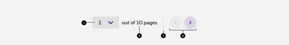 The pagination is composed of different components of the Design System. For more details on the pagination states, please refer to the articles select and navigation arrows articles.
