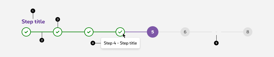 Shows the name of a given step on hover (or tap on mobile), it gives some context about passed and future steps. More infos about the tooltip -