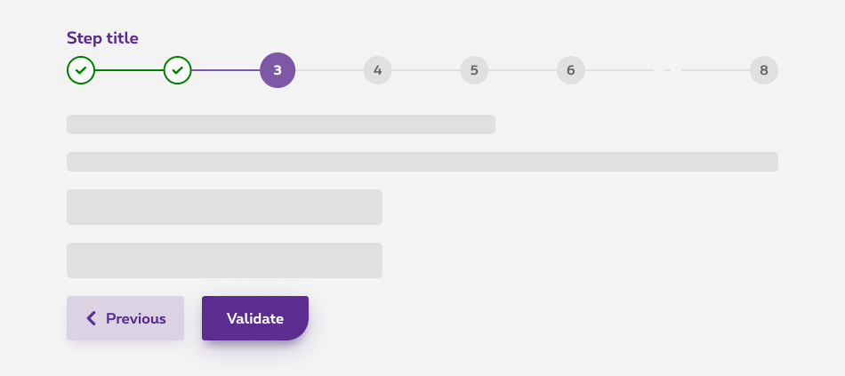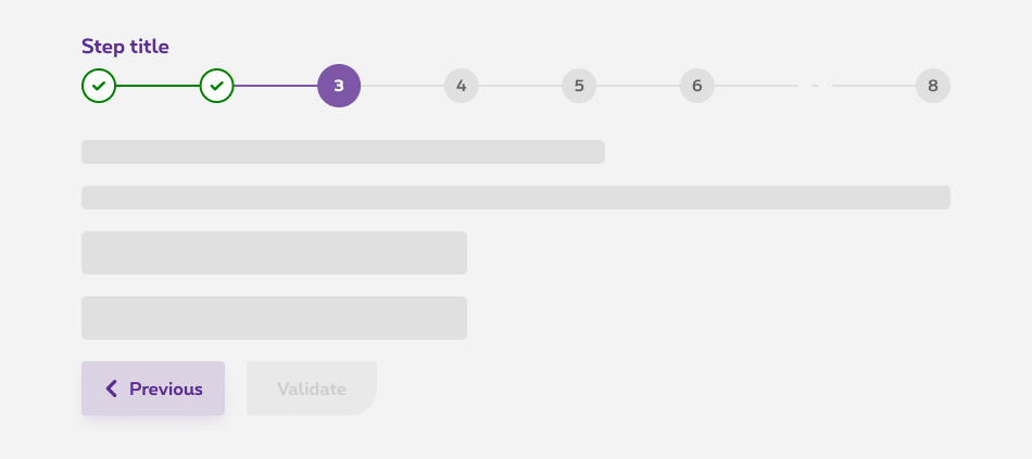 Indicate the name of the step. Use clear and concise labels to facilitate user's understanding (e.g.: delivery method, document upload) -