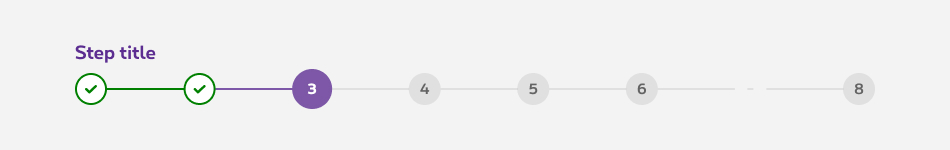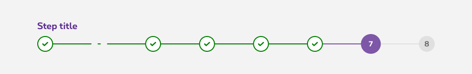 Progress indicator can display up to 7 steps. If the process contains less that 7 steps, they will occupy the whole width of their container. If more than 7 steps, the indicator will truncate a portion of the steps, depending on the user's progression.