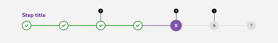 Display the steps in order from left to right. Indicate to the user that they are performing a multistep process, and show the direction of movement. Allow the user to return to the previous step to review their data submission via a previous at the end of the current screen