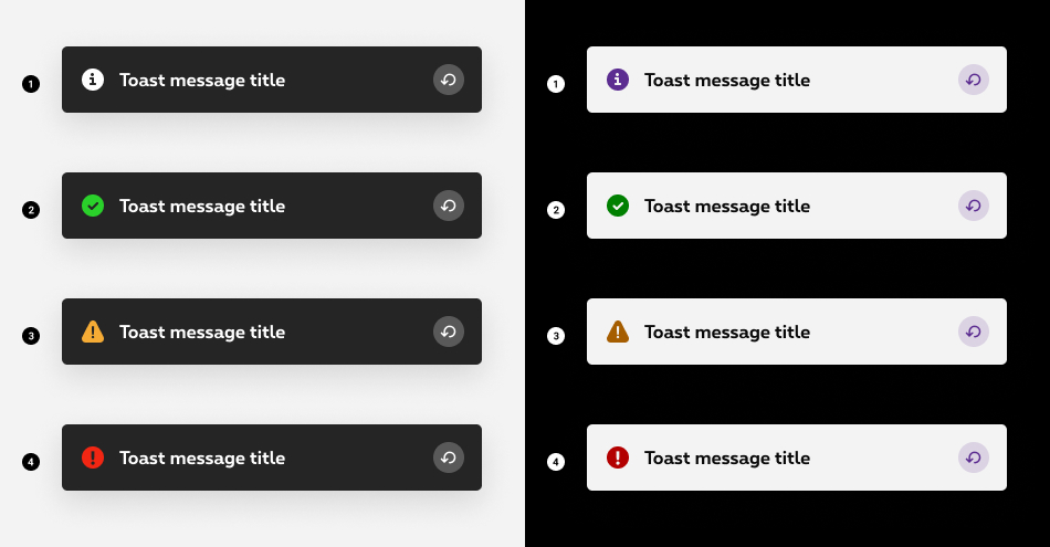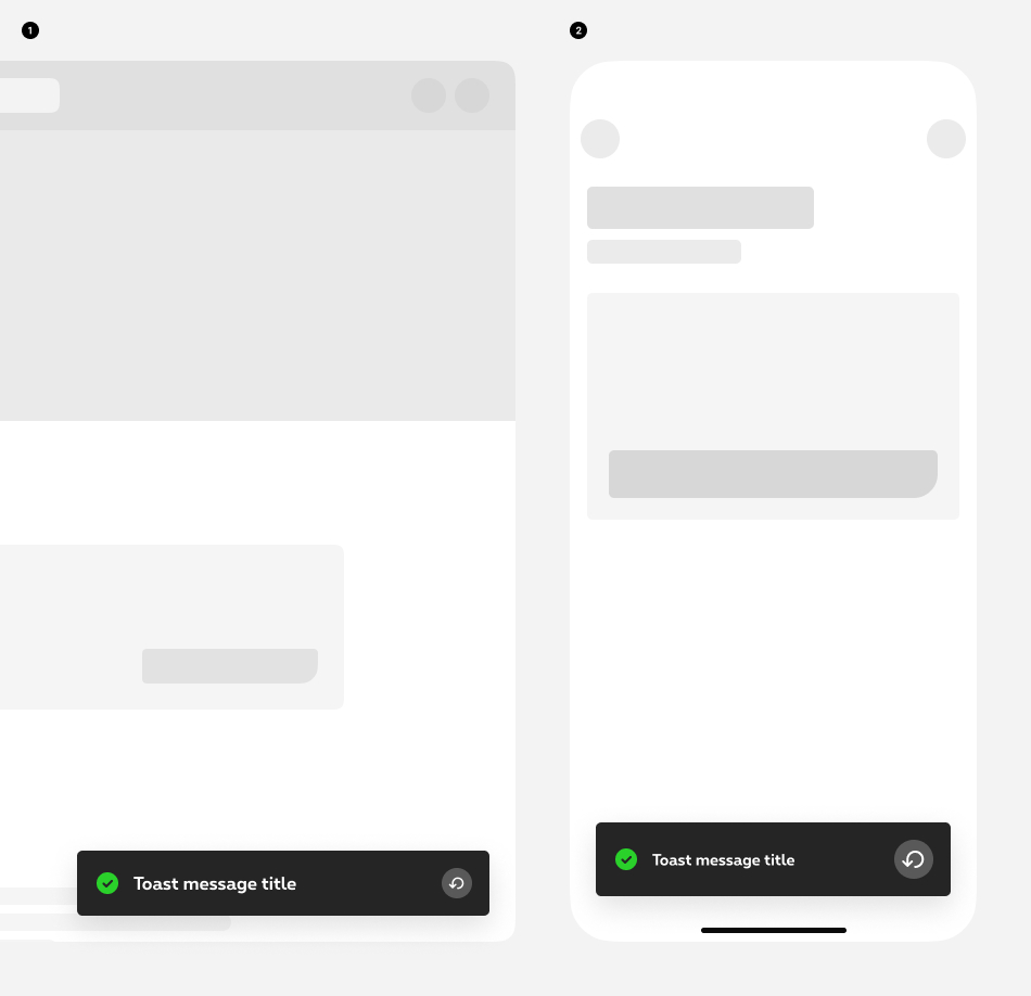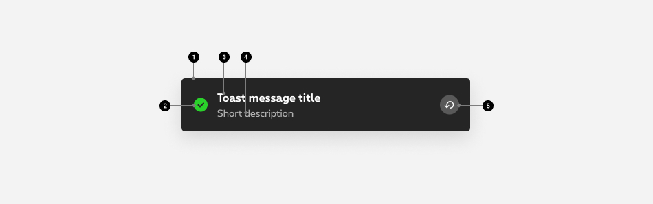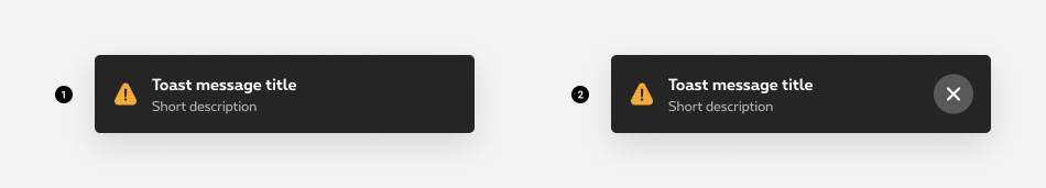 The message itself is contained in a box. Since the toaster message needs to grab the user’s attention, we use a dark box on positive pages and a light box on negative pages. This contrasts nicely with the page’s background. - Icon