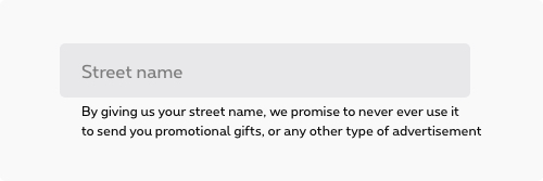 Help text appears below the input label and assists the user to provide the right information. Help text is always available, even when the field is focused, that's why it's the correct choice for need-to-know information. For context or background information that is "nice to have," use placeholder text or a tooltip.