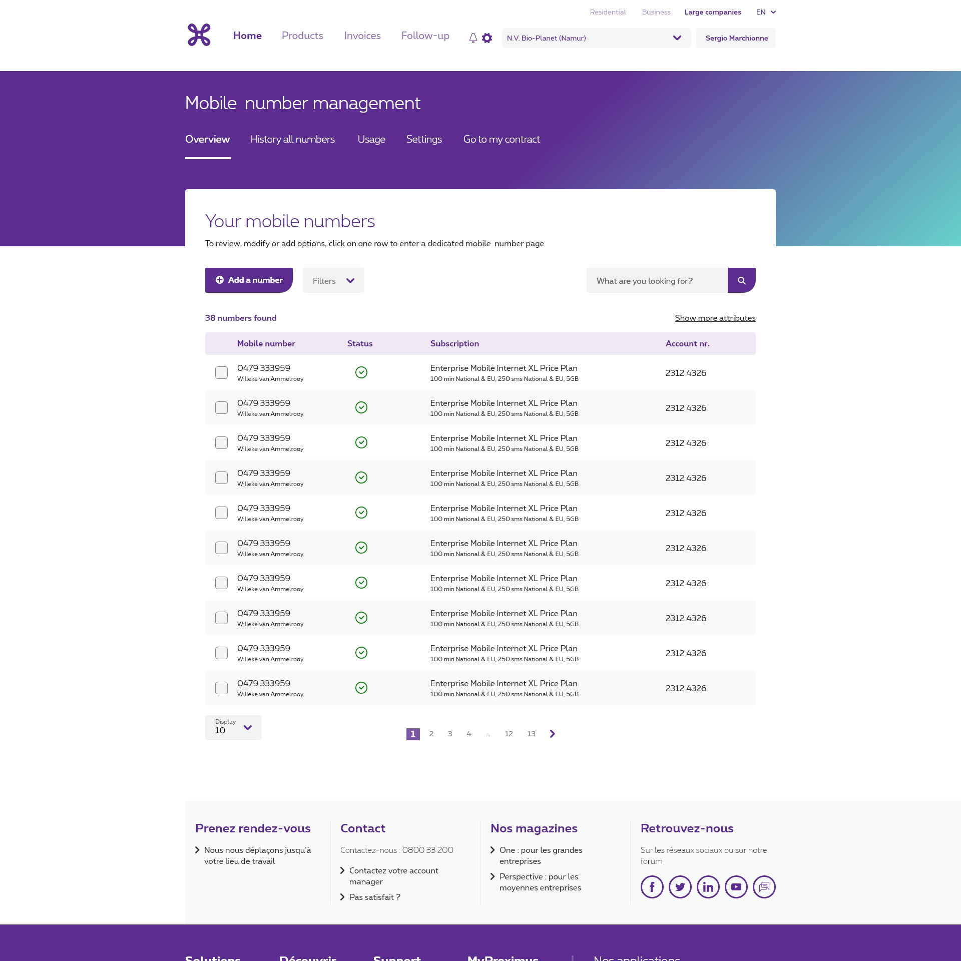 Generally, a table is the first and main element of a page (after the ID Panel if it is displayed). It should also be preceded by an actions panel and options to filter and search.