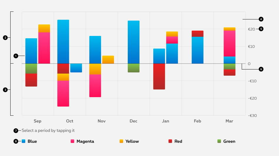 Avoid filling the chart frame with too many elements, as it impacts the user’s ability to interpret the data.