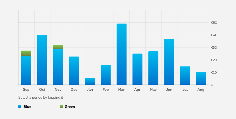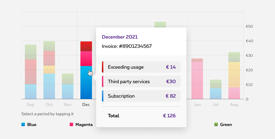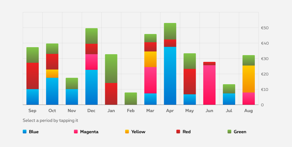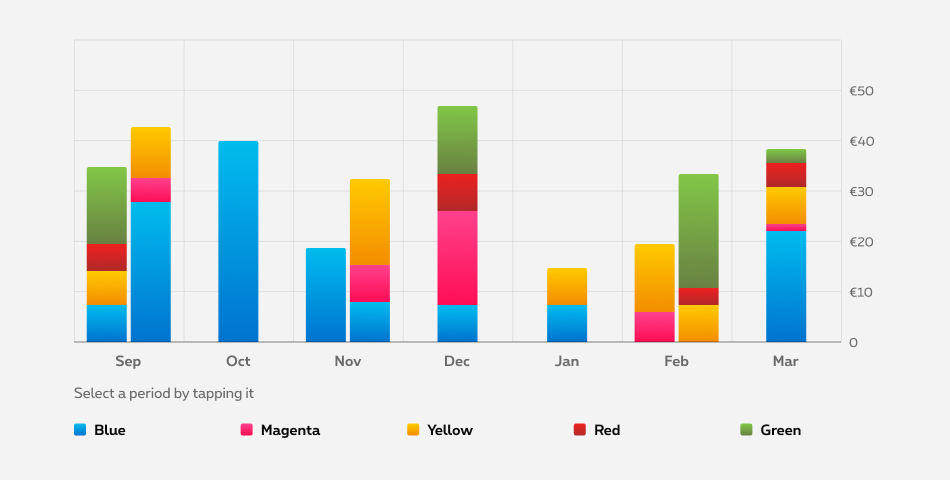 Chart is a type of columns graph that is used to compare values and show trends over time. In a billing context for example, a columns chart allows the user to grab rapidly his billing information, make comparisons and track his billing trends.